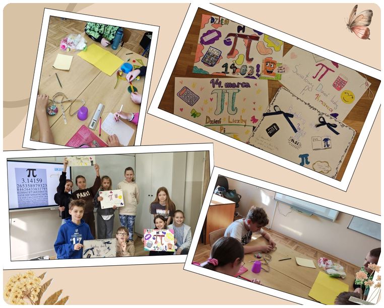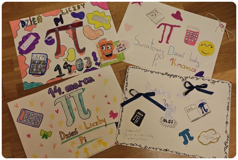 Uczniowie klasy 4 i 5 przygotowali barwne i pomysłowe plakaty. Prace te w przystępny sposób przybliżyły historię liczby Pi oraz jej obecność w otaczającym nas świecie.