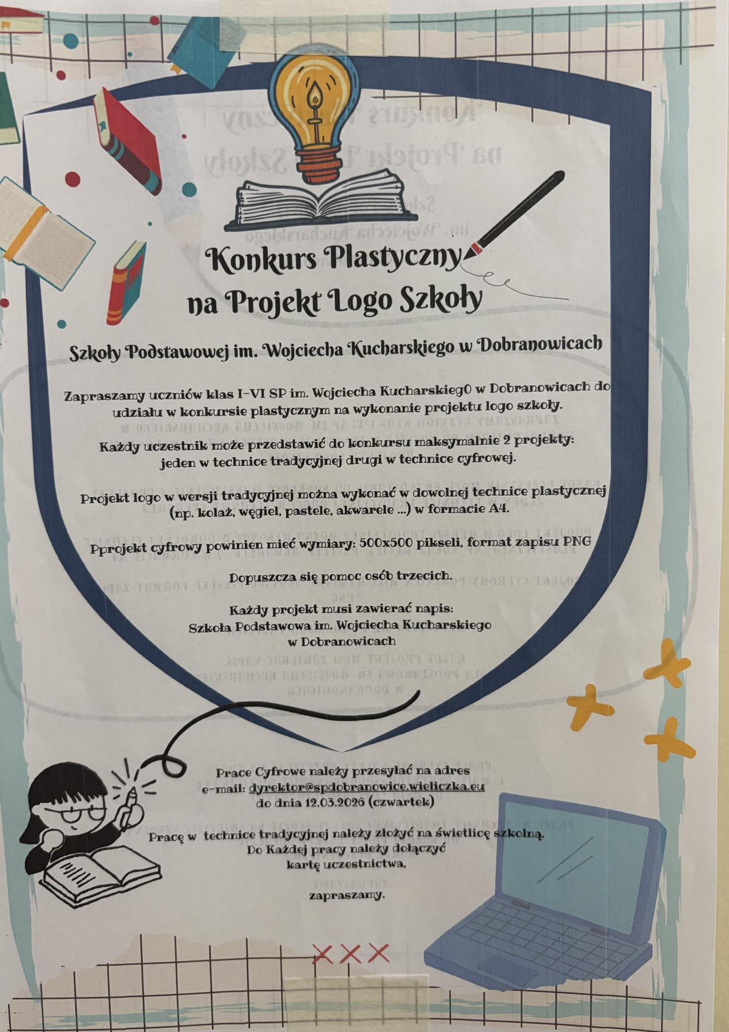 Zapraszamy do udziału w wyjątkowym konkursie na stworzenie logo naszej szkoły w Dobranowicach. To doskonała okazja, aby wykazać się kreatywnością, talentem plastycznym i pomysłowością.