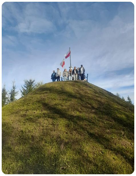 12 listopada 2025 r. uczniowie kl.6 wyruszyli w niezwykłą podróż szlakiem pamięci i bohaterstwa – od zaprzyjaźnionej szkoły św. Królowej Jadwigi w Winiarach po Kopiec Dąbrowskiego w Pierzchowie, gdzie urodził się twórca Legionów. Podczas gry terenowej „Strażnicy Czasu” odkrywali miejsca, które mówią o odwadze, mądrości i wspólnocie.