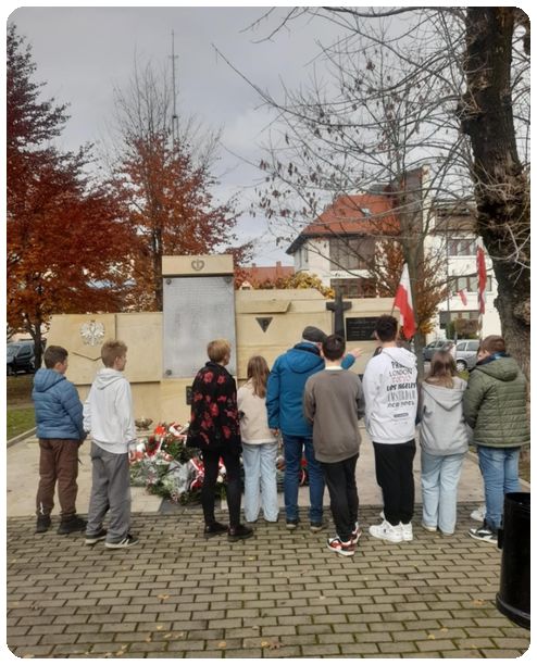 Uczniowie uczcili Obrońców Ojczyzny z 1939, Legionistów z 1914r. Stanęli przy obelisku Bartosza Głowackiego, oddali hołd ofiarom Katynia i przedwojennej społeczności żydowskiej, odwiedzili także bibliotekę w Pierzchowie, której przekazaliśmy książkę o Dobranowicach i tomik zmagającej się z niepełnosprawnością poetki, Magdaleny Klimek