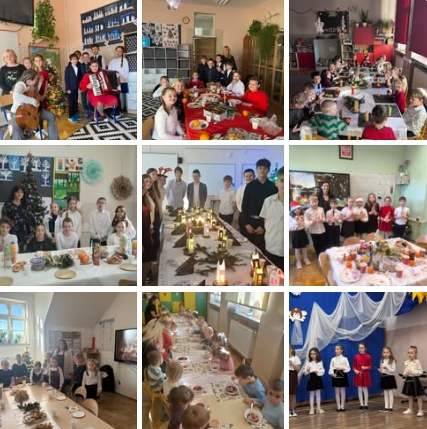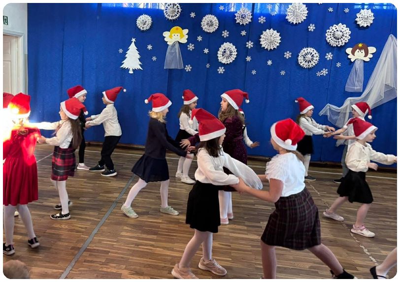 Ostatniego dnia przed rozpoczęciem przerwy świątecznej spędziliśmy wspólnie świętując. Klasy 1 i 2 przygotowały krótką inscenizację przypominając historię Bożego Narodzenia. Odbył się konkursu kolęd. Nasi utalentowani uczniowie śpiewali i grali na różnych instrumentach najpiękniejsze kolędy i pastorałki. Na koniec zaprezentowały się dziewczynki, które uczęszczają na zajęcia dodatkowe z gimnastyki artystycznej.
