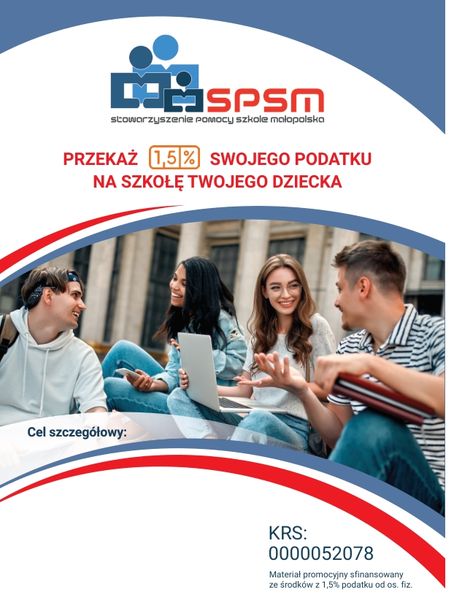 Jak co roku prosimy o wsparcie naszej szkoły i przekazanie 1,5% podatku.